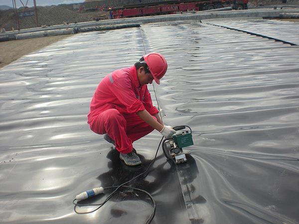 4.防渗焊接前要调整好接缝处两幅边单膜,使之搭接一定的宽带,且平整、无折皱。