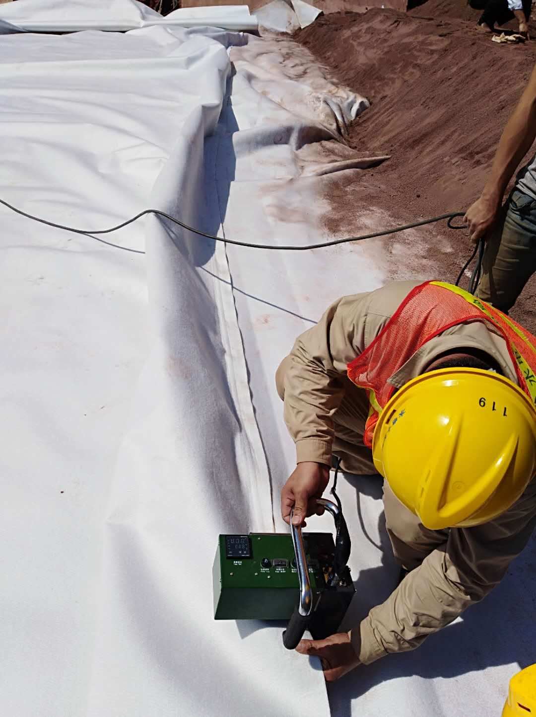 复合蜜桃永久免费膜铺设过程中,为了缓解膜体受力条件,适应堤基变形变位,沿铺设轴线每隔100m左右设一伸缩节,在复合蜜桃永久免费膜与其它防渗体接头部位附近及铺设拐角、折线等处亦需设置伸缩节。